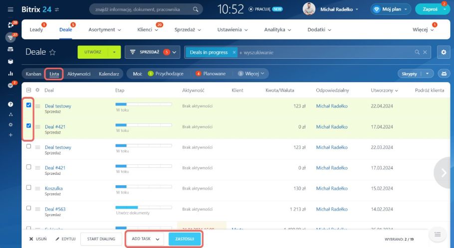 - Automatyczne przypisywanie leadów do etapów sprzedaży – CRM może sugerować, na jakim etapie lejka sprzedażowego znajduje się klient, ale wymaga to wcześniejszego skonfigurowania reguł działania.