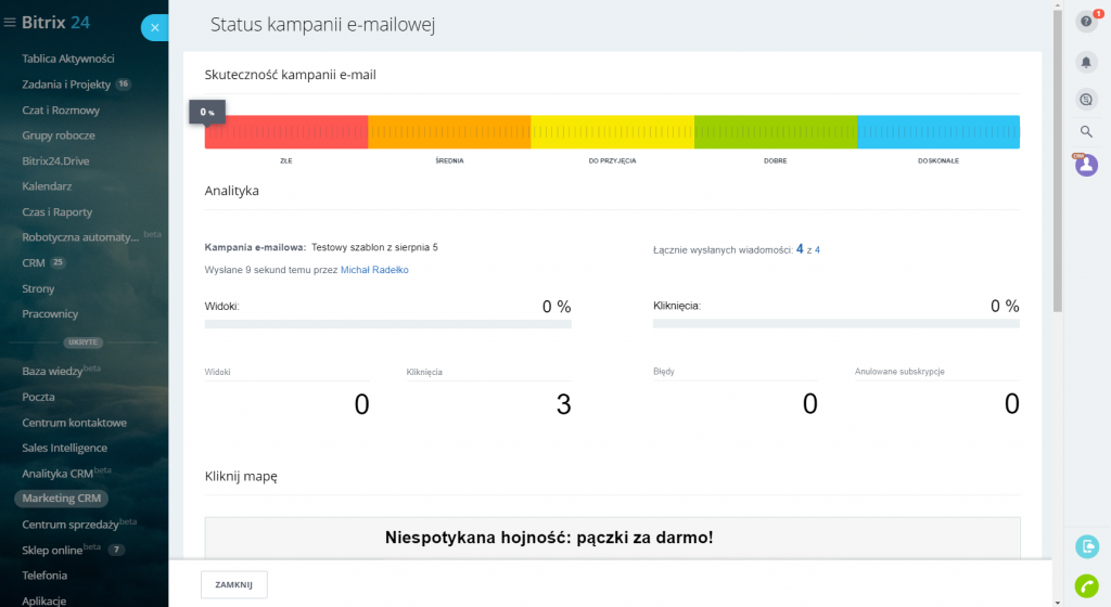 - Wysyłanie spersonalizowanych wiadomości – CRM może sugerować treści e-maili na podstawie wcześniejszych interakcji z klientami, ale ostateczna forma wiadomości zależy od zespołu sprzedaży.